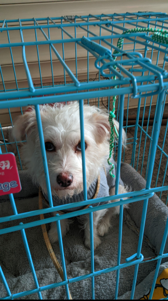 在2023年的年末,奶奶家新添了一位小成员,它叫果冻,是一只串串小狗。它长这样。